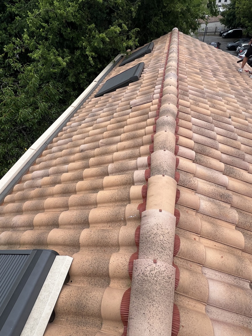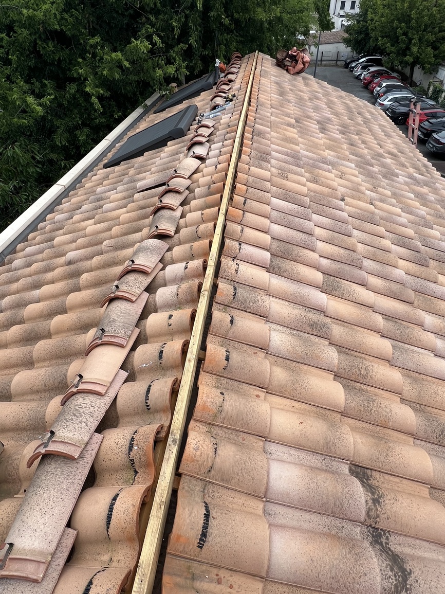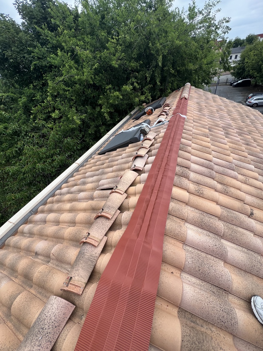 Dépose des tuiles faîtière et dépose des closoir endommagé mise en place des nouveaux closoir souple et ventilé repose des tuiles faîtière avec Clips de fixation.